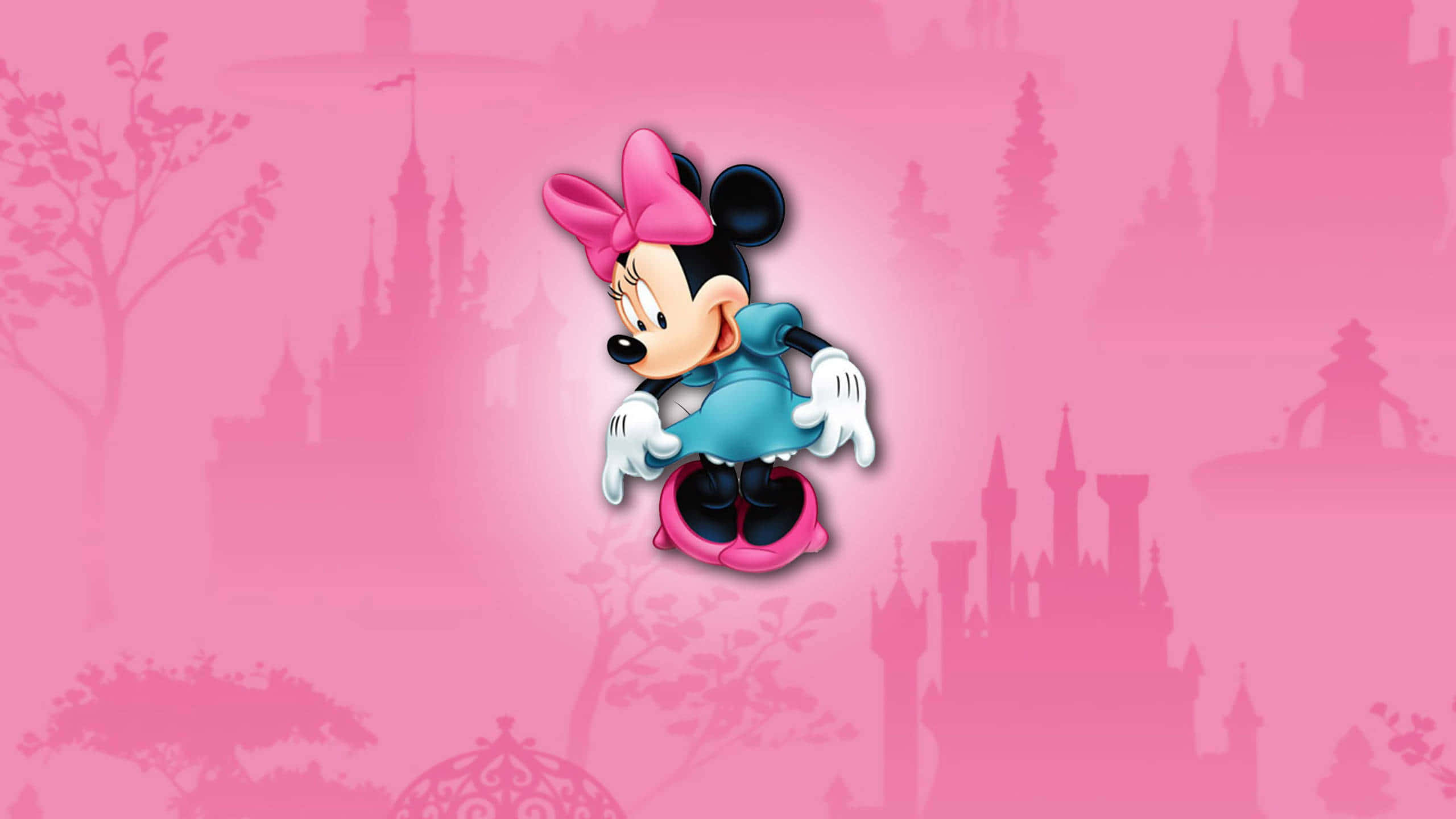 The Iconic Minnie Mouse Dressed In A Soft Pink Outfit. Wallpaper