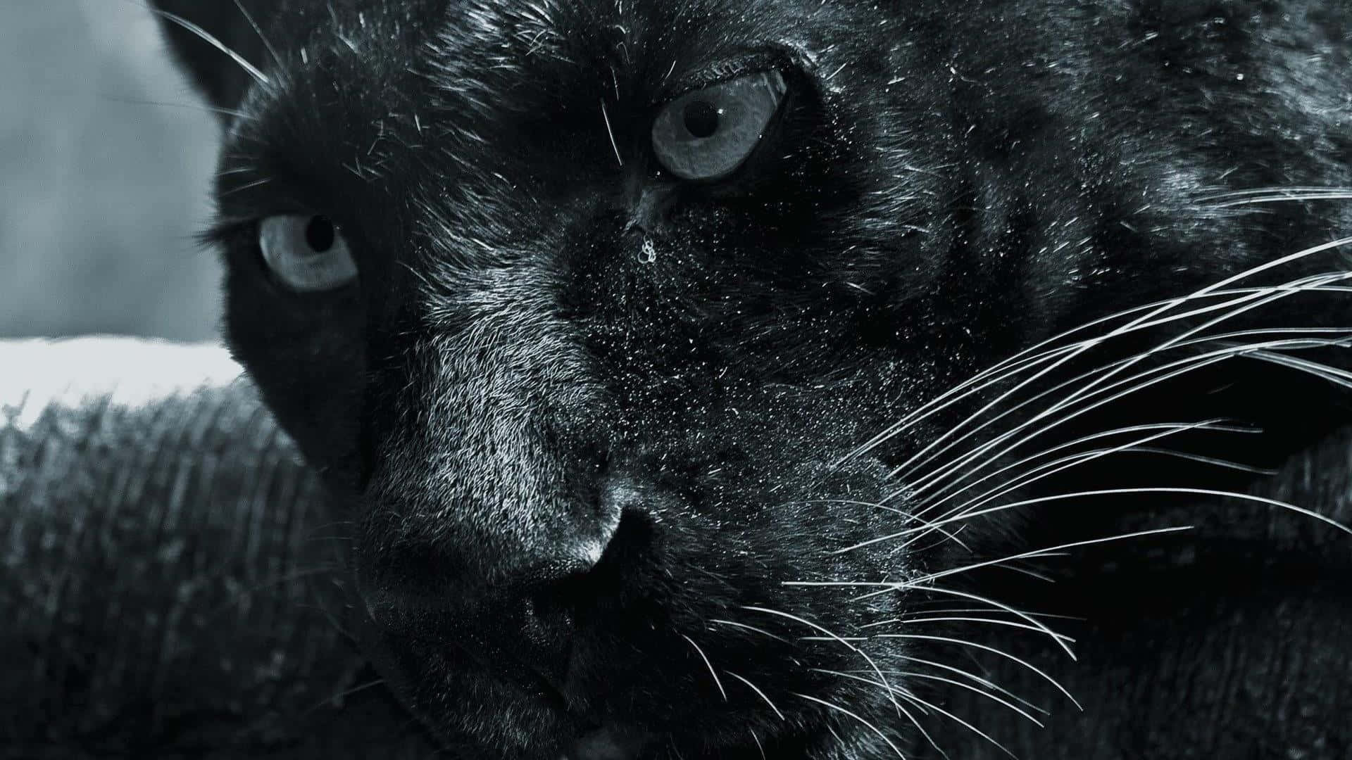 The Majestic Black Panther Calmly Reclines In Its Habitat Amidst Lush Greenery. Wallpaper