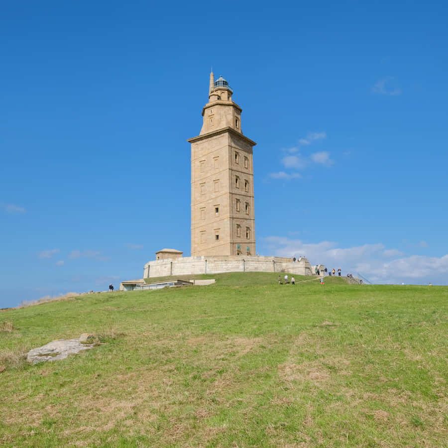 “the Majestic Tower Of Hercules Rising Above Verdant Meadows” Wallpaper