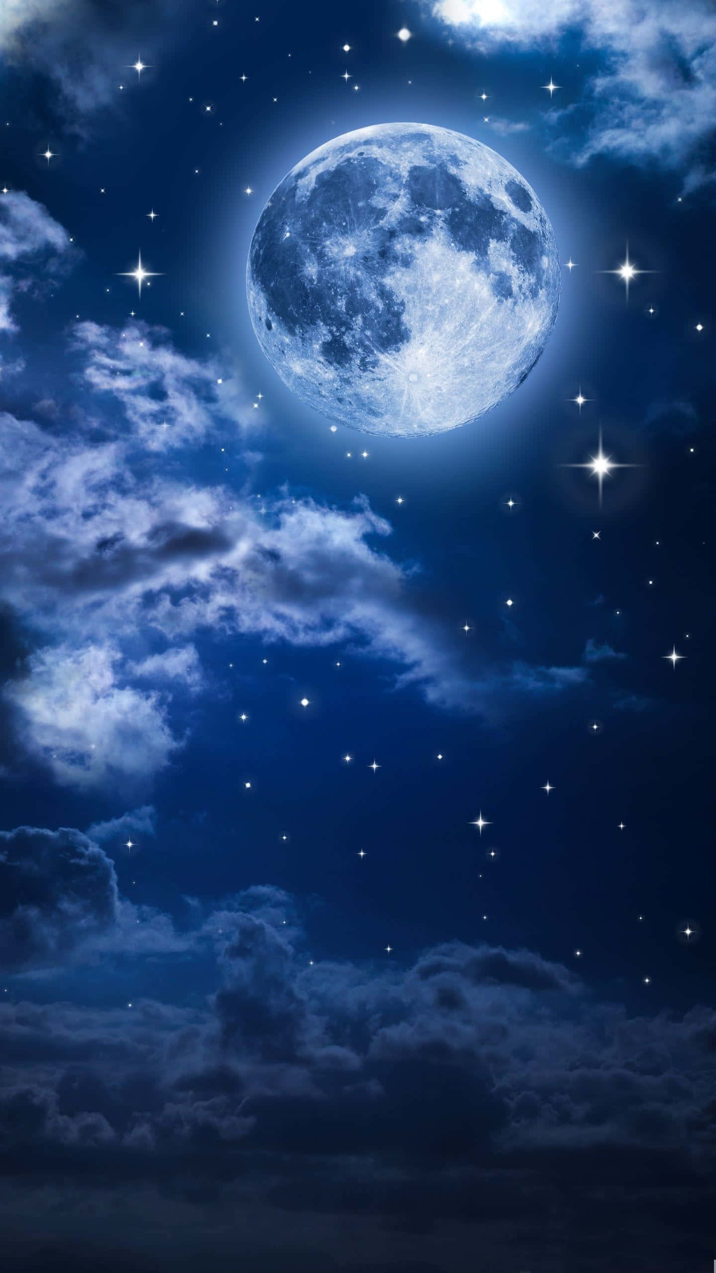 The Moon Is In The Sky With Stars And Clouds Wallpaper
