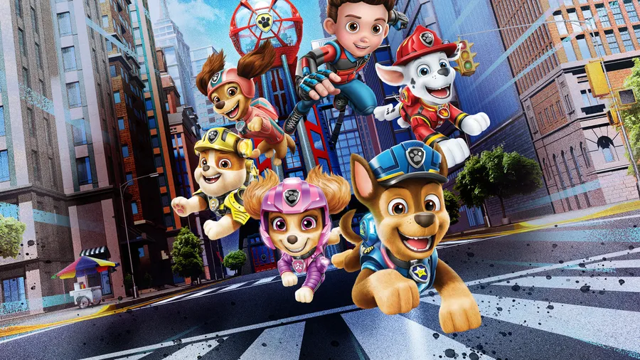 The Paw Patrol Team In Action During Their Movie Adventure Wallpaper
