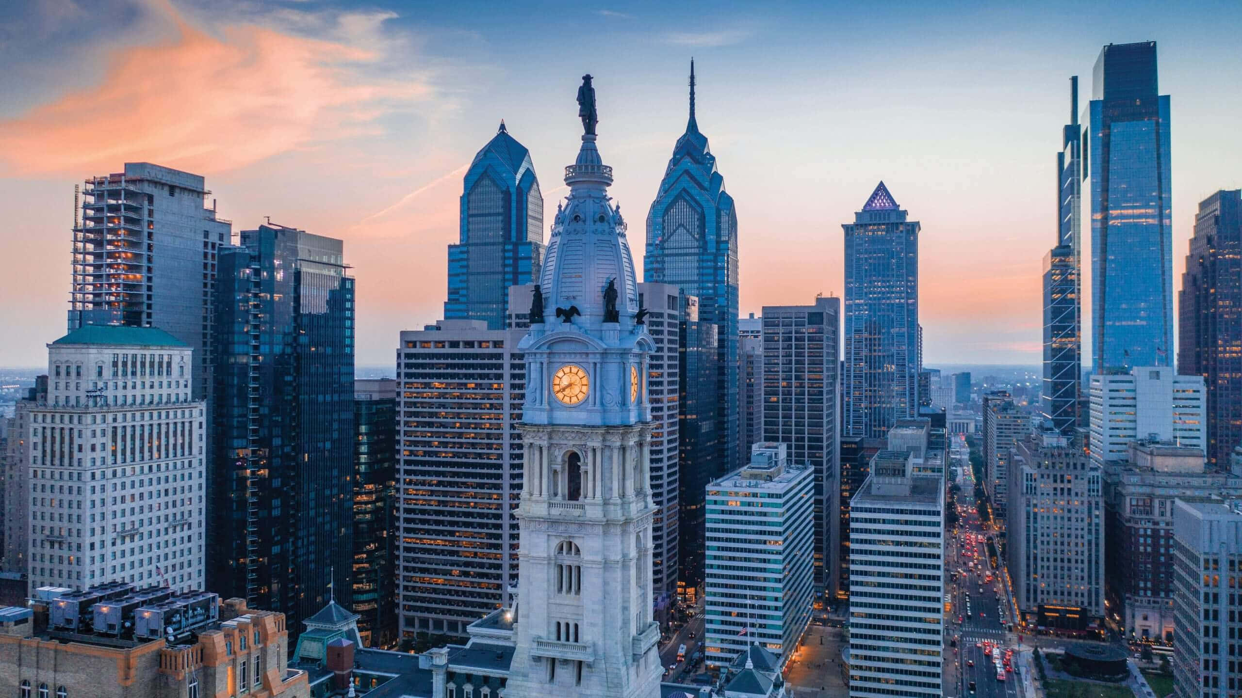 The Philadelphia Skyline At Dusk Wallpaper