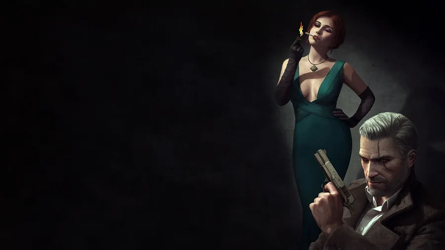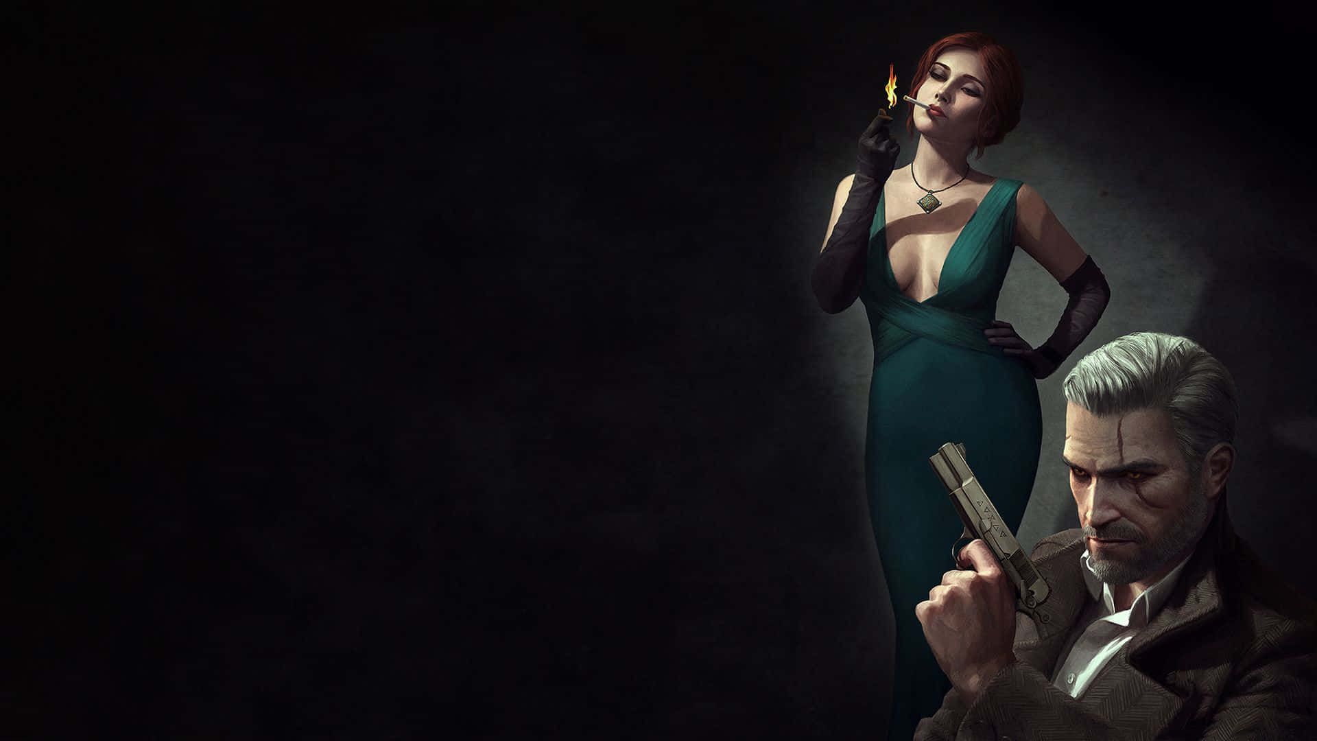 The Witcher 1920×1080 Geralt Triss Black Aesthetic Wallpaper