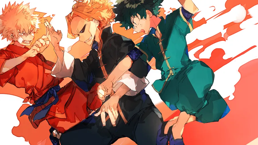 “three Friends, Deku, Todoroki, And Bakugou, Comeback Together To Defeat Their Enemies. Wallpaper