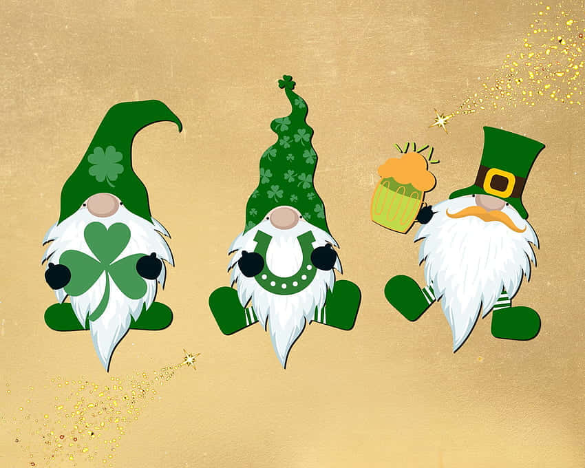 Three Shamrock Gnomes With Hats And A Shamrock Wallpaper