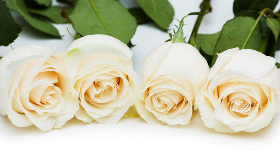 Three White Roses Are Lined Up On A White Background Wallpaper