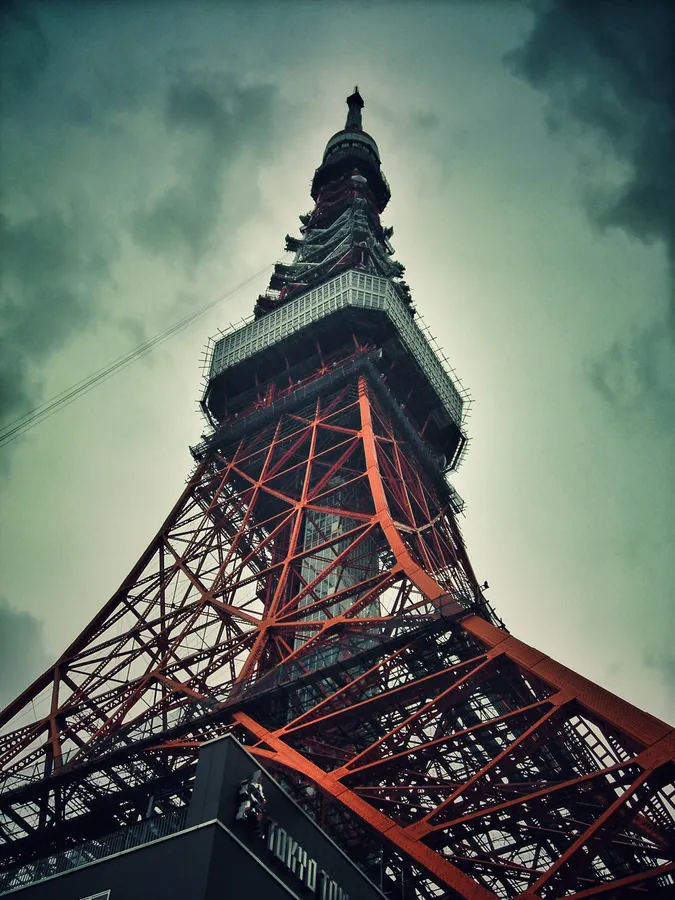 Tokyo Tower Dark Cloudy Sky Wallpaper