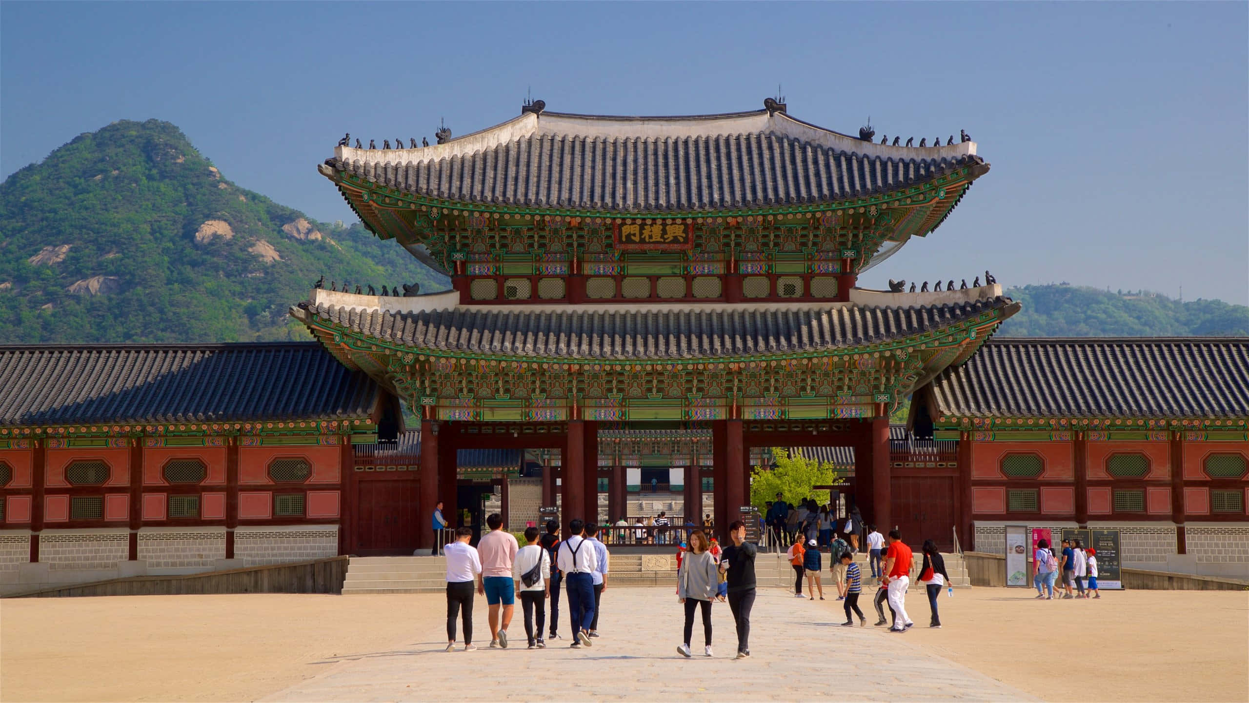 Tourists At The Gyeongbokgung Palace Wallpaper