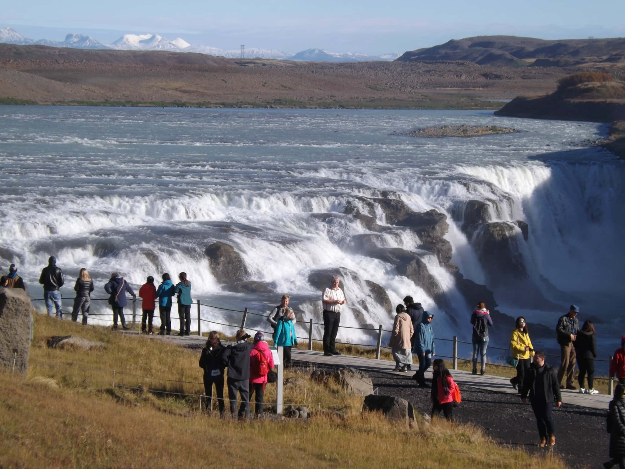 Tourists In Gullfoss Waterfall In Southwest Iceland Wallpaper