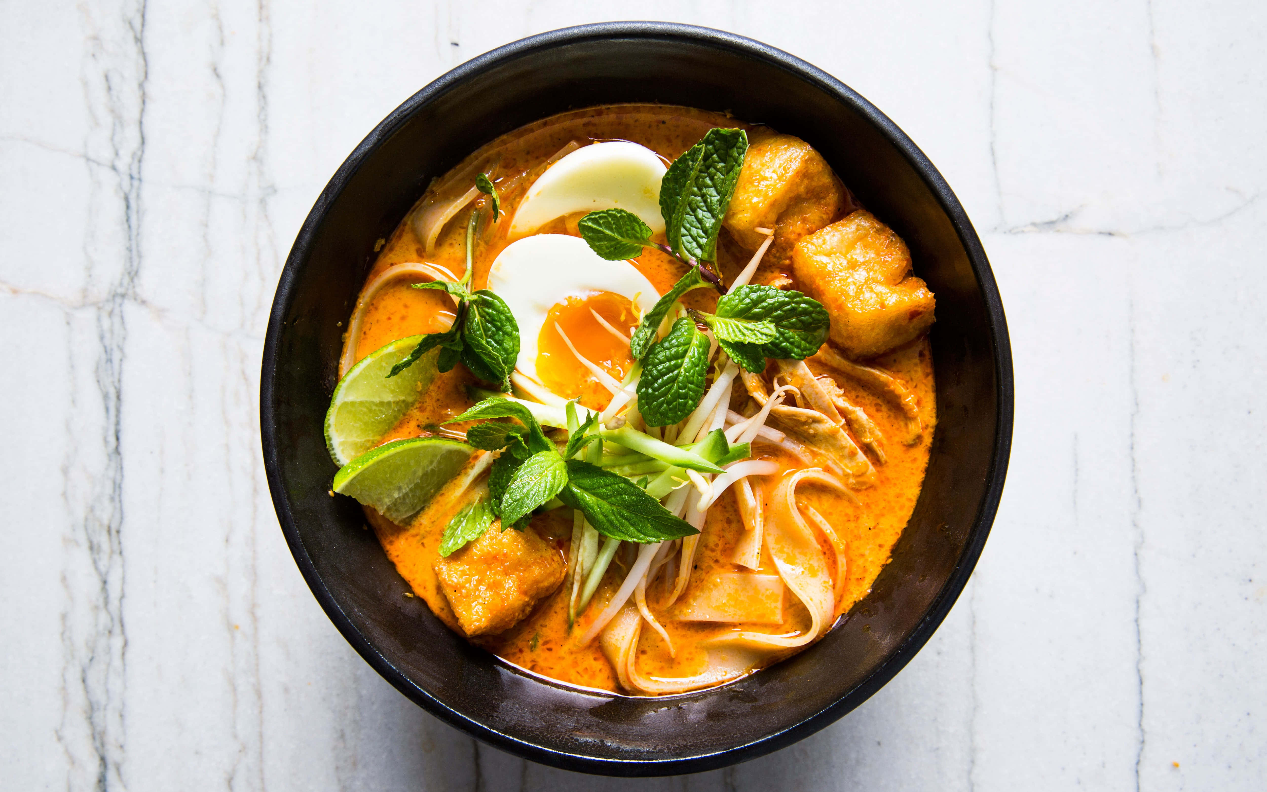 Traditional Curry Laksa Deliciously Prepared With Flat Vermicelli Wallpaper
