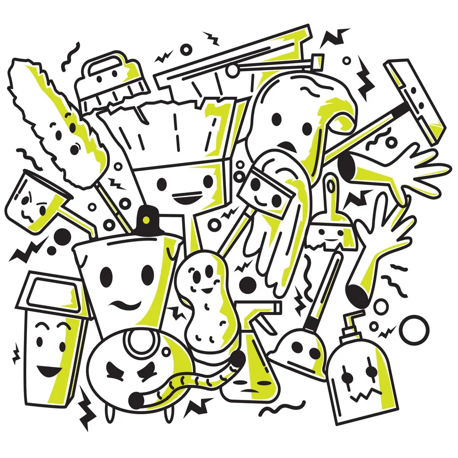 Trash Can Together With Cleaning Supplies Wallpaper