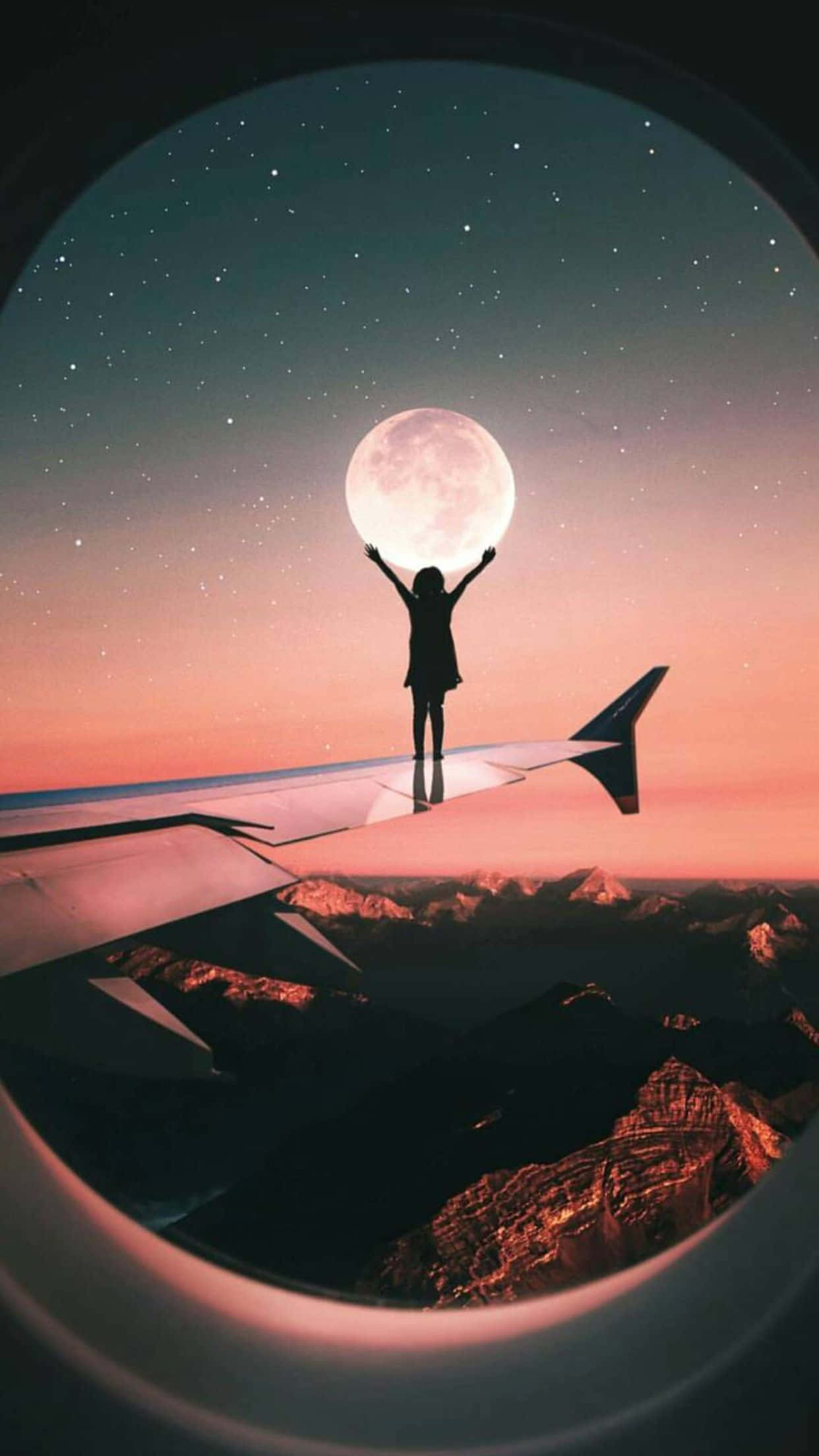Tumblr Photography Holding Moon Plane Window Wallpaper