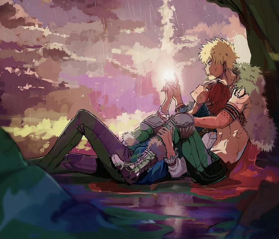 Two Anime Characters Laying Down In The Water Wallpaper