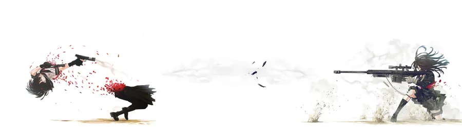 Two Anime Girls With Guns And Blood On Their Faces Wallpaper