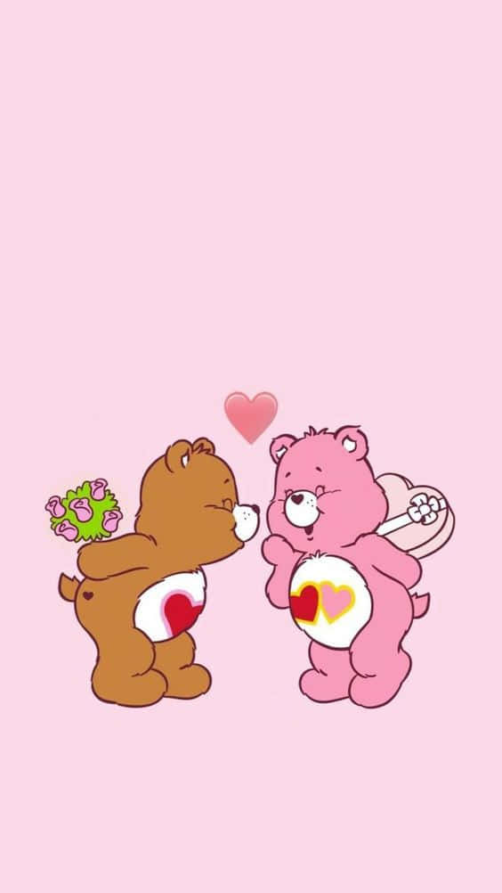 Two Care Bears Are Holding Hands And Kissing Wallpaper