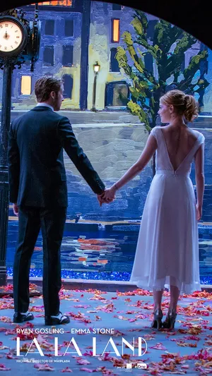 Two Dreamers Explore The Vibrant Night Life Of Los Angeles In La La Land. Wallpaper