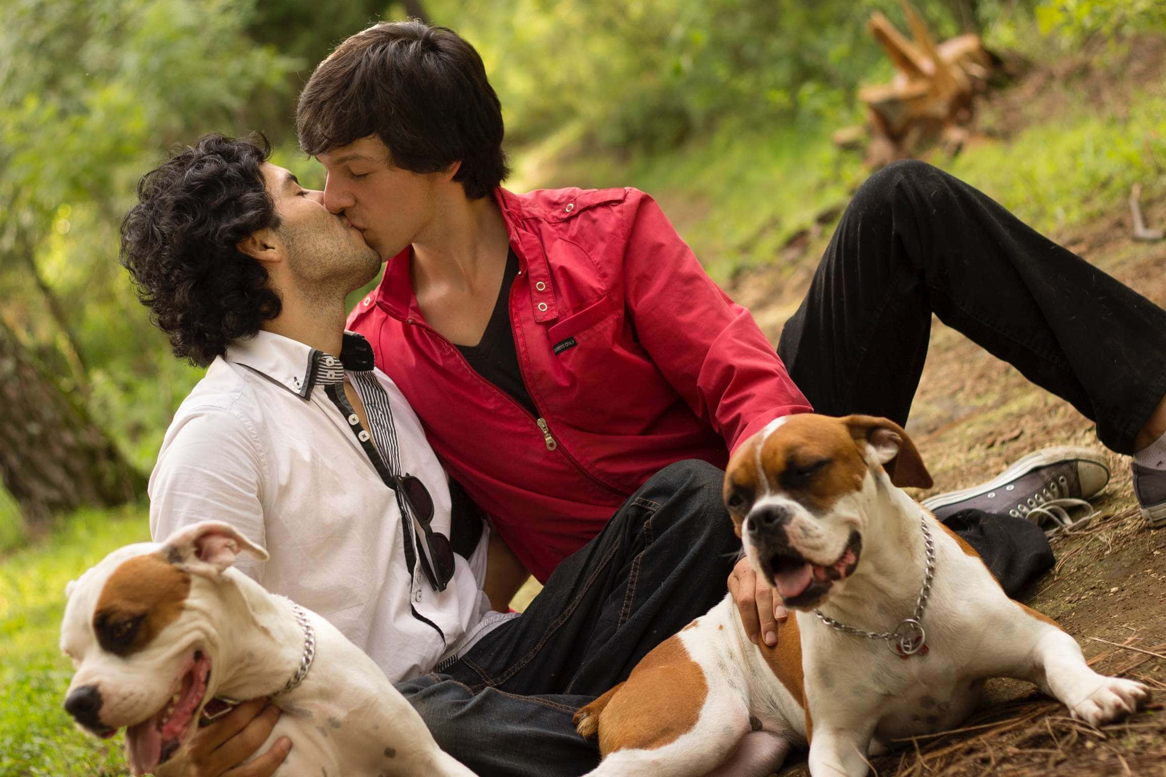 Two Gay Boys With Dogs Wallpaper