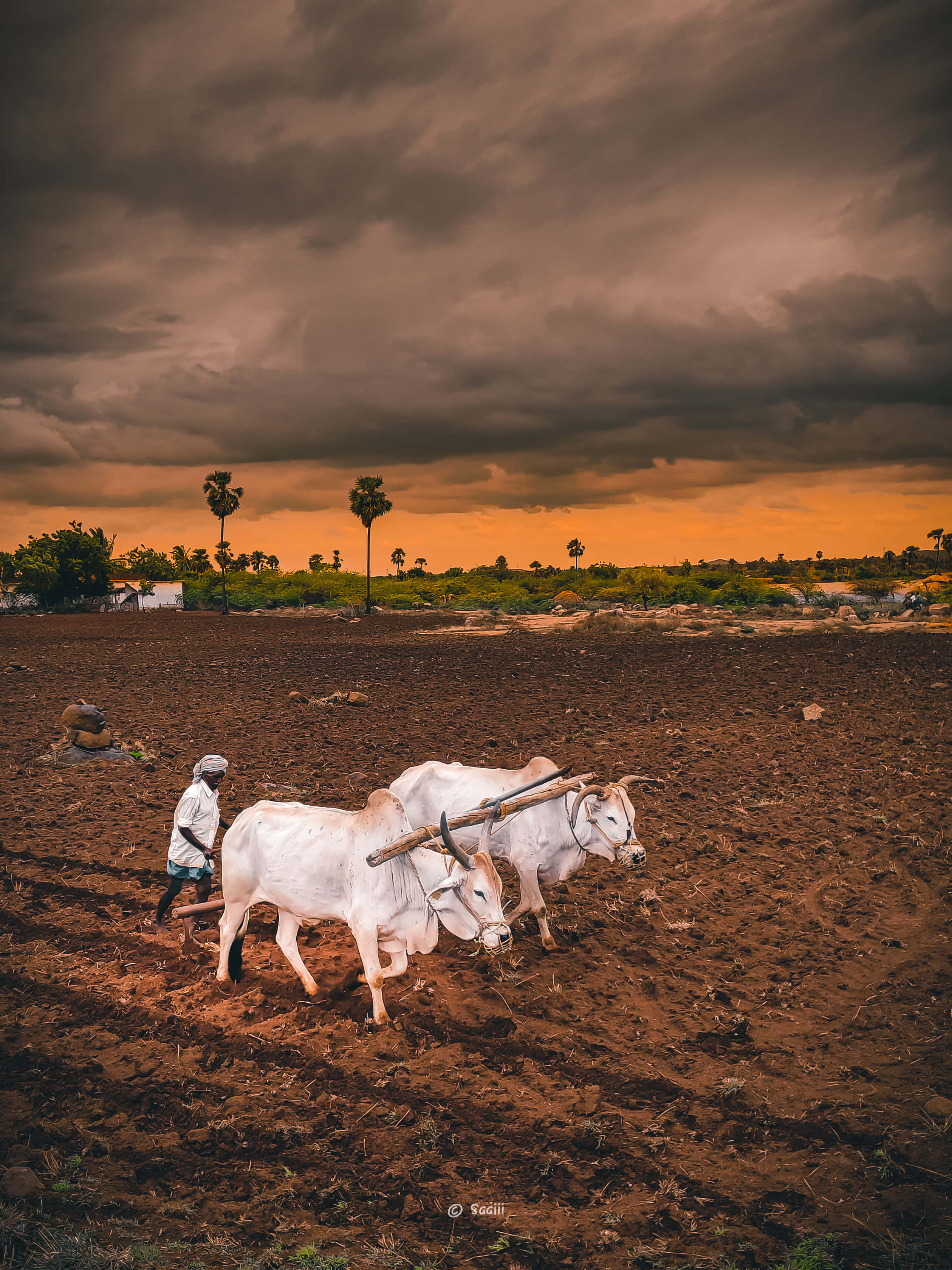 Two Oxen Plowing A Field Wallpaper