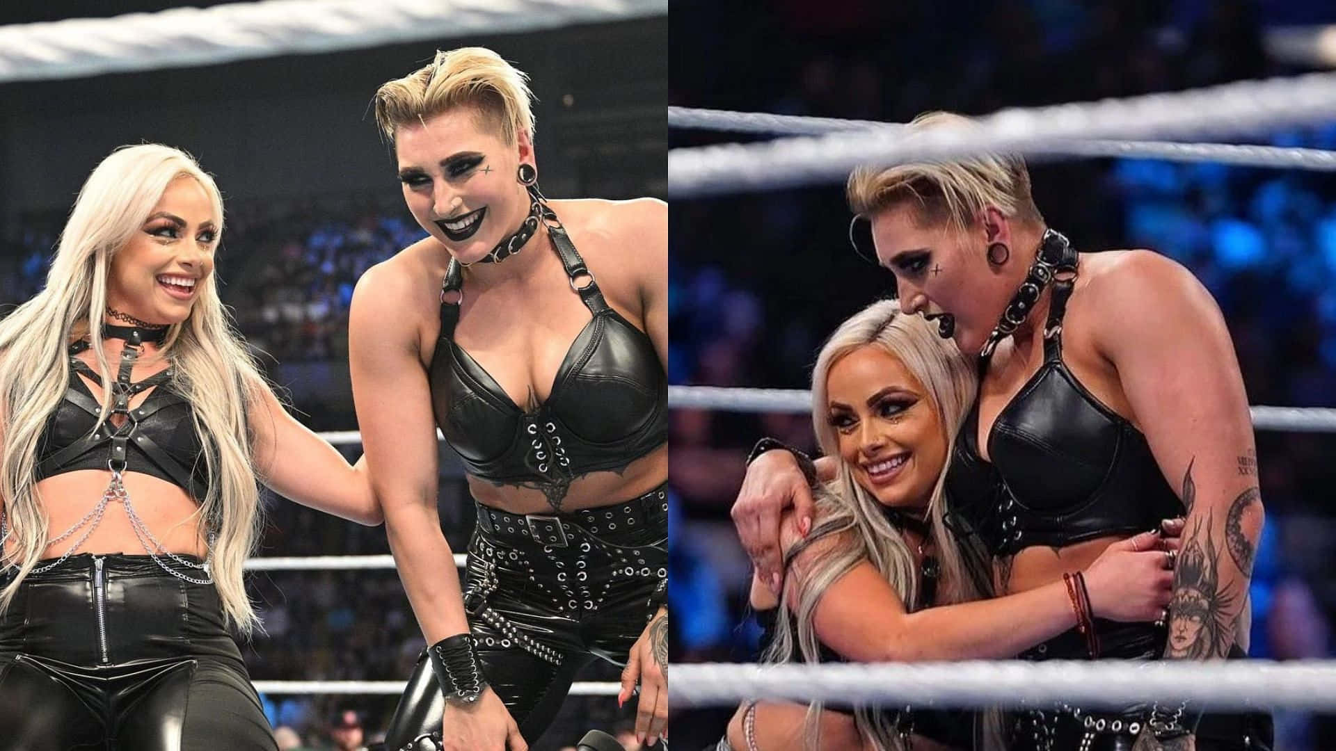 Two Women In Black Wrestling Outfits Are Posing For A Picture Wallpaper
