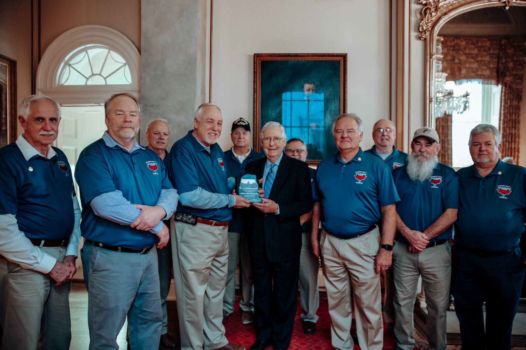 Umwa Members Giving Mitch Mcconnell Memorabilia Wallpaper
