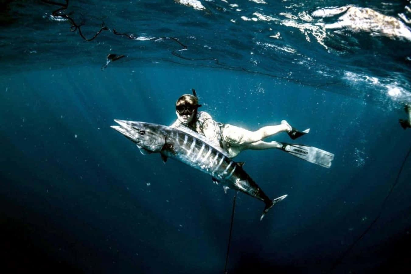 Underwater Spearfishing Wahoo Catch Wallpaper