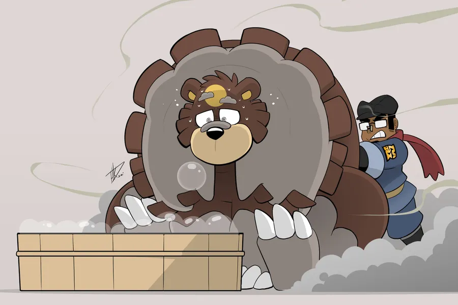 Ursaluna Pokémon Bath Time Wallpaper