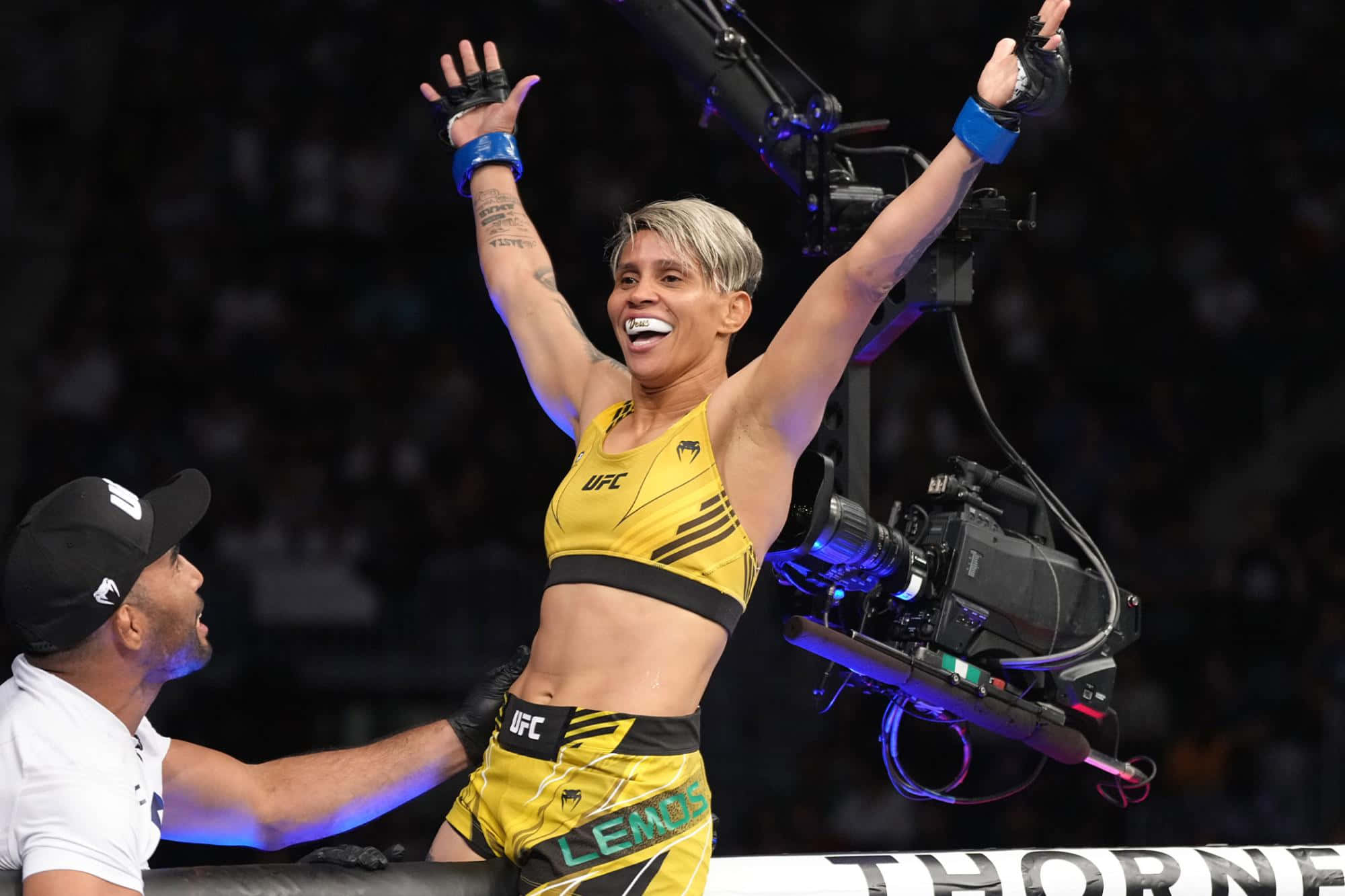 Victorious M M A Fighter Celebration Wallpaper