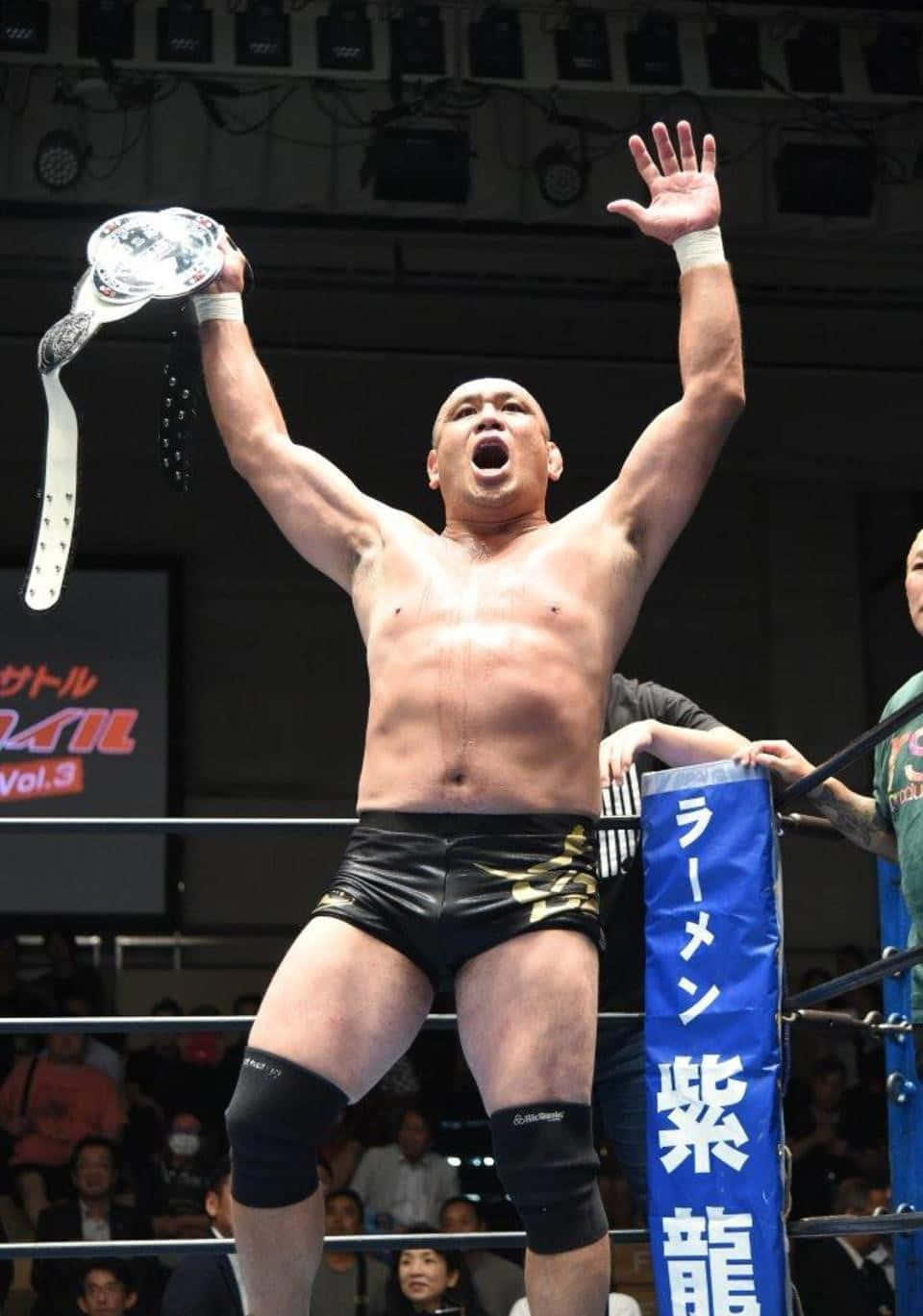 Victorious M M A Fighter Raising Belt Wallpaper