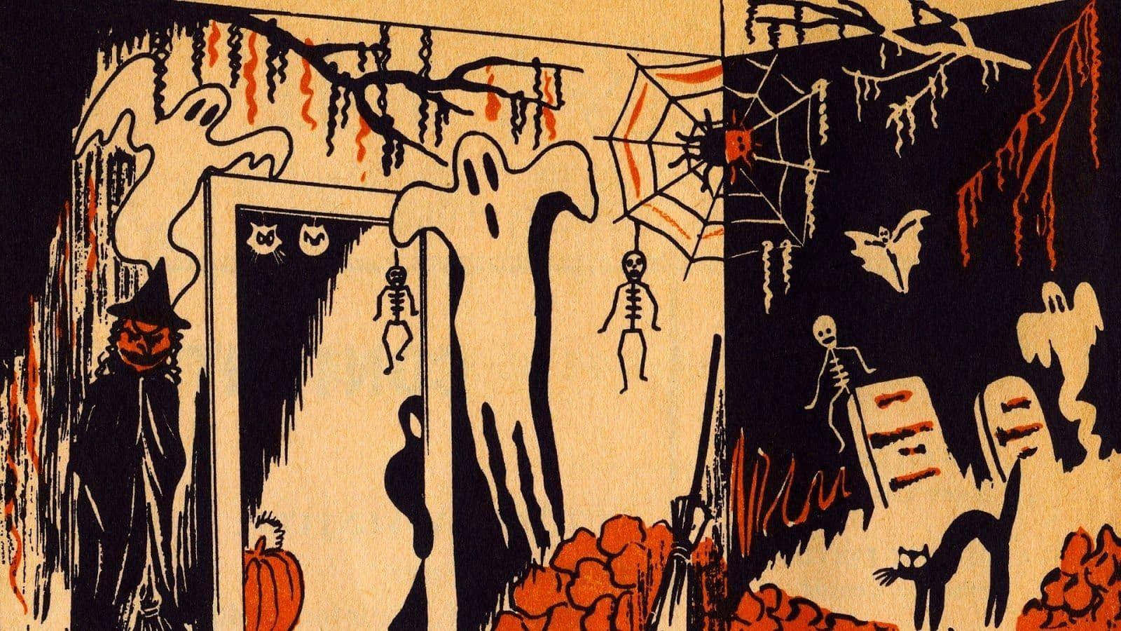 Vintage Halloween Silhouette Scene Wallpaper