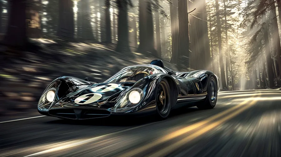 Vintage Racecar Speeding Through Forest Wallpaper