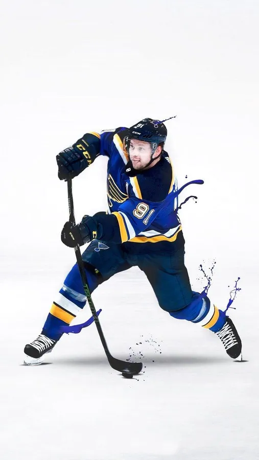 Vladimir Tarasenko Dribbling Hockey Puck In Splatter Paint Effect Wallpaper
