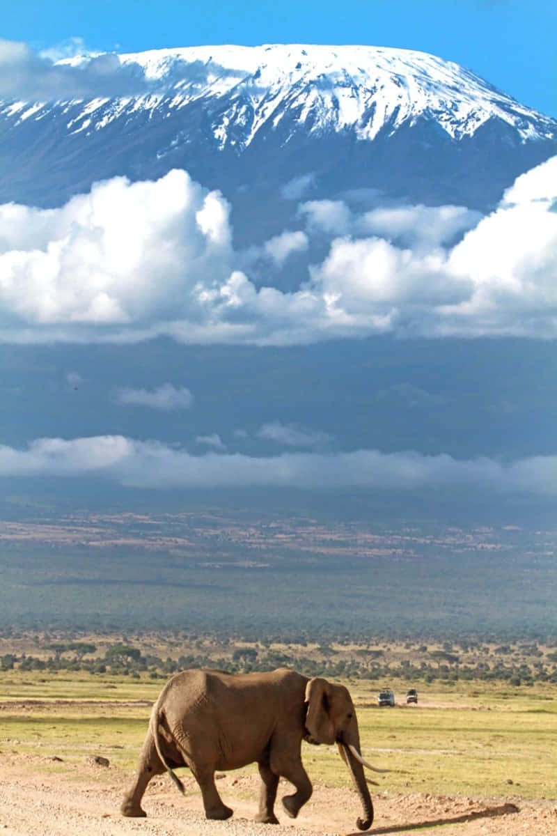 Walking Elephant In Mount Kilimanjaro Wallpaper