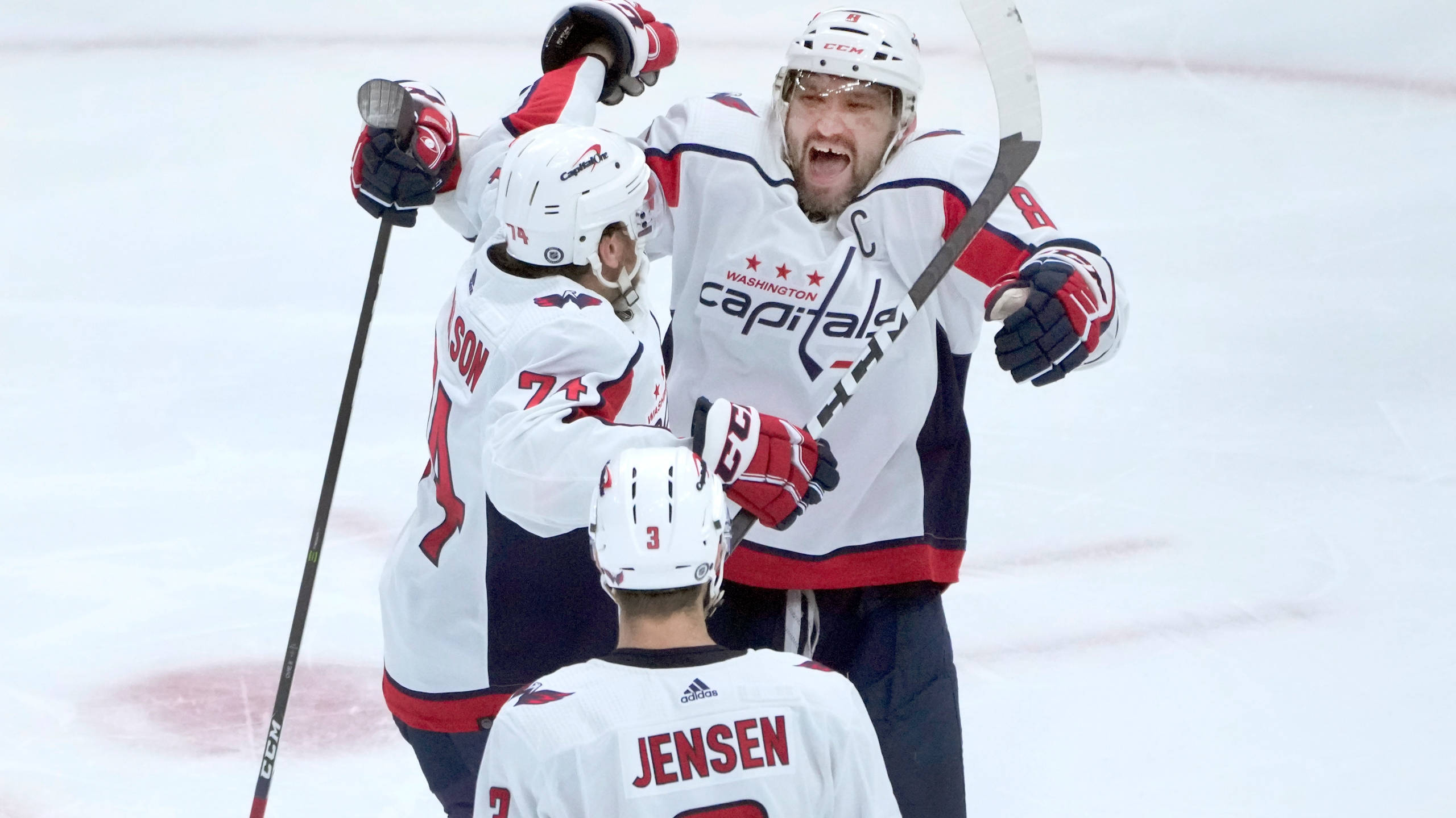 Washington Capitals Celebrating John Carlson And Alexander Ovechkin Wallpaper