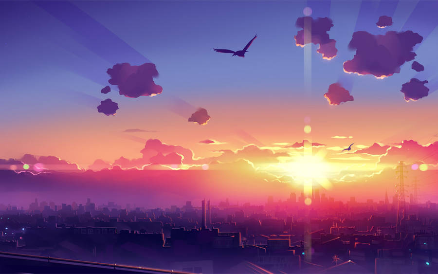 “watch The Sunrise In This Anime City And Be Mesmerised” Wallpaper