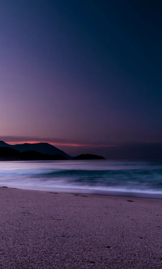 Waves On The Shore On Blue And Purple Sunset Wallpaper