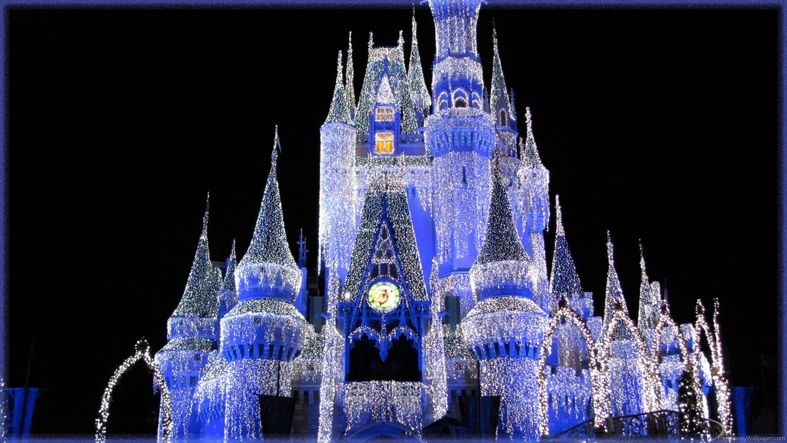 White And Blue Colored Disney Castle Wallpaper