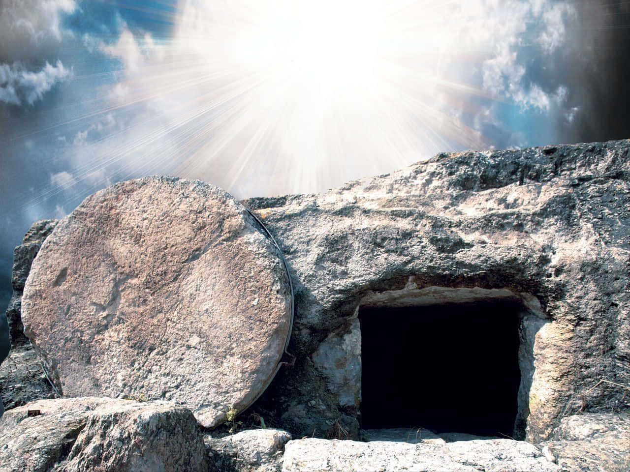 White Clouds Above An Empty Tomb Wallpaper