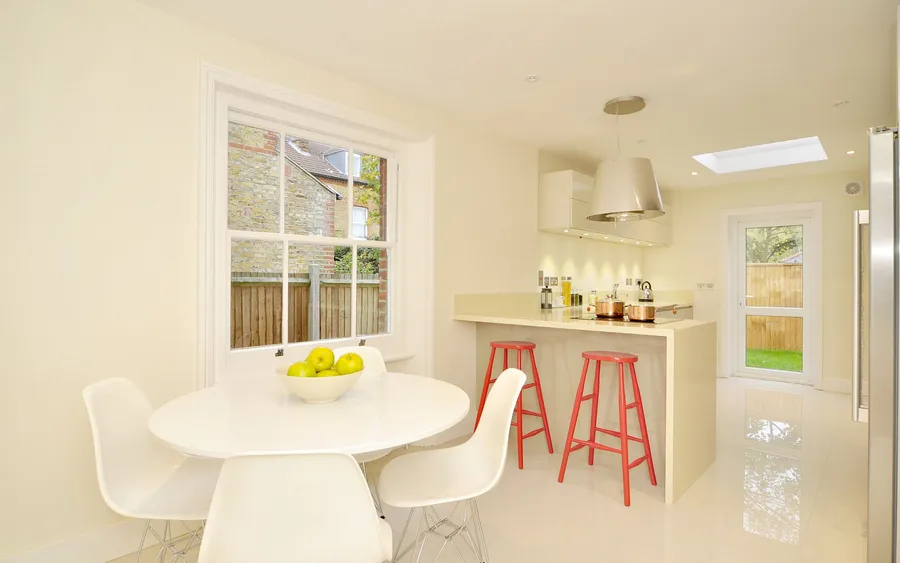 White Kitchen Background With Stools Wallpaper