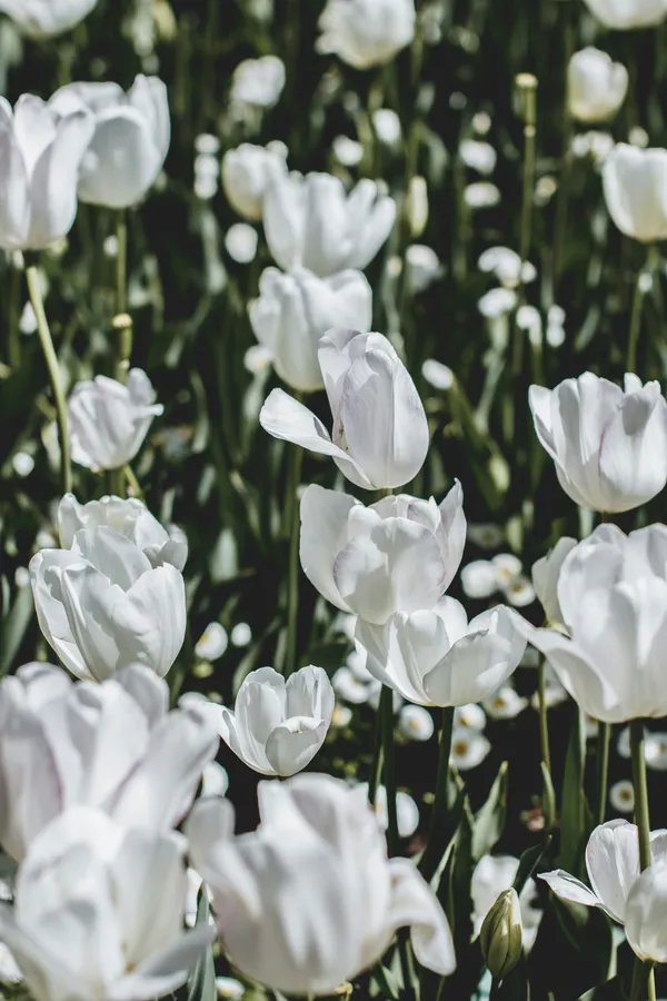 White Tulips Garden Sunlight.jpg Wallpaper