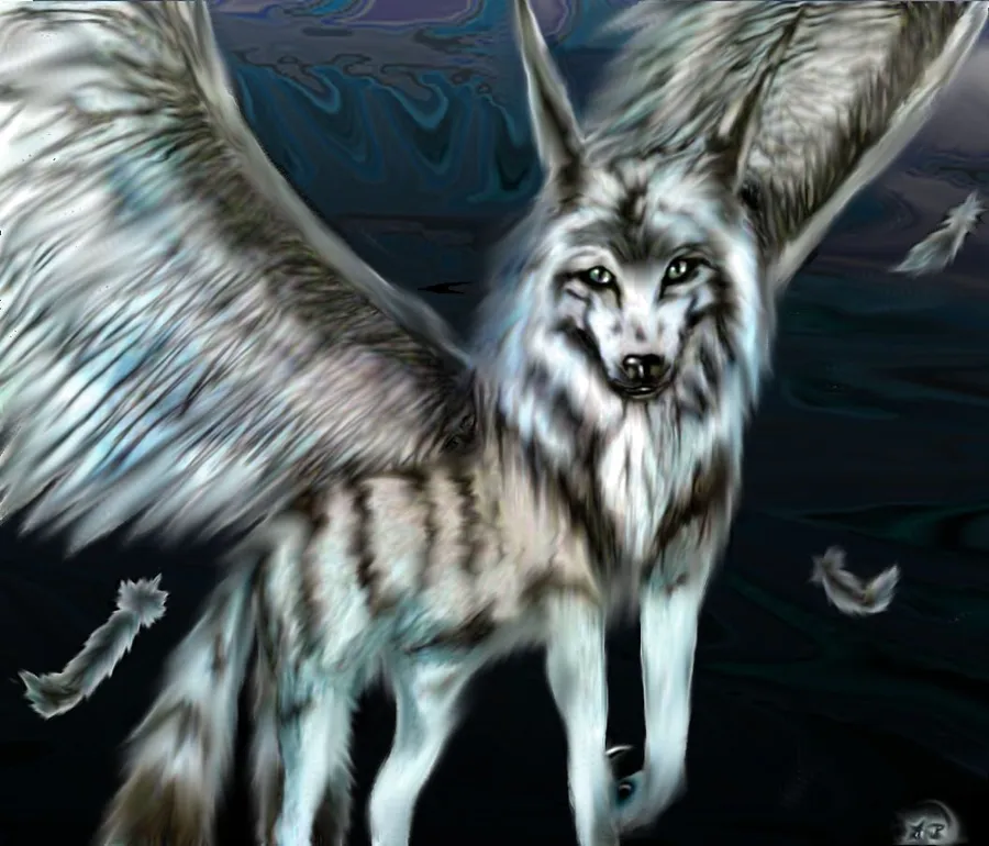 Winged White Wolf Black Background Wallpaper