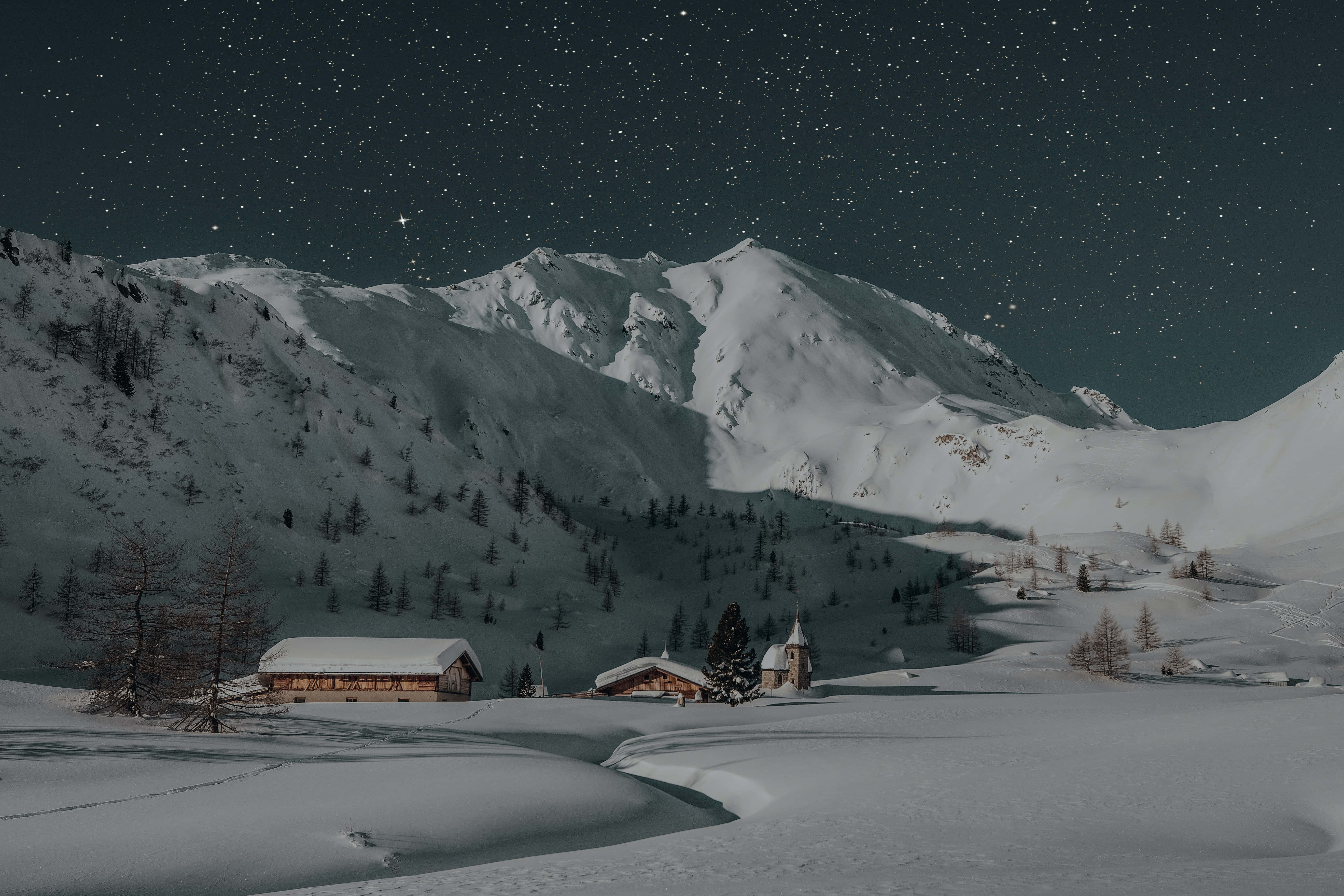 Winter Night Desktop With Cabins Wallpaper