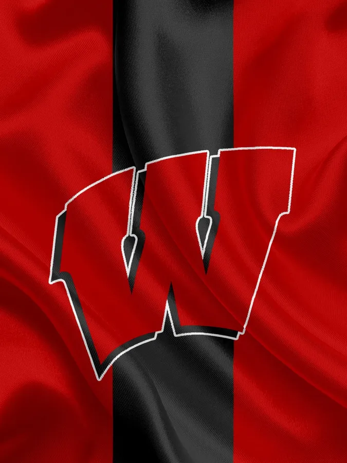 Wisconsin Badgers Logo On A Vibrant Red Background Wallpaper