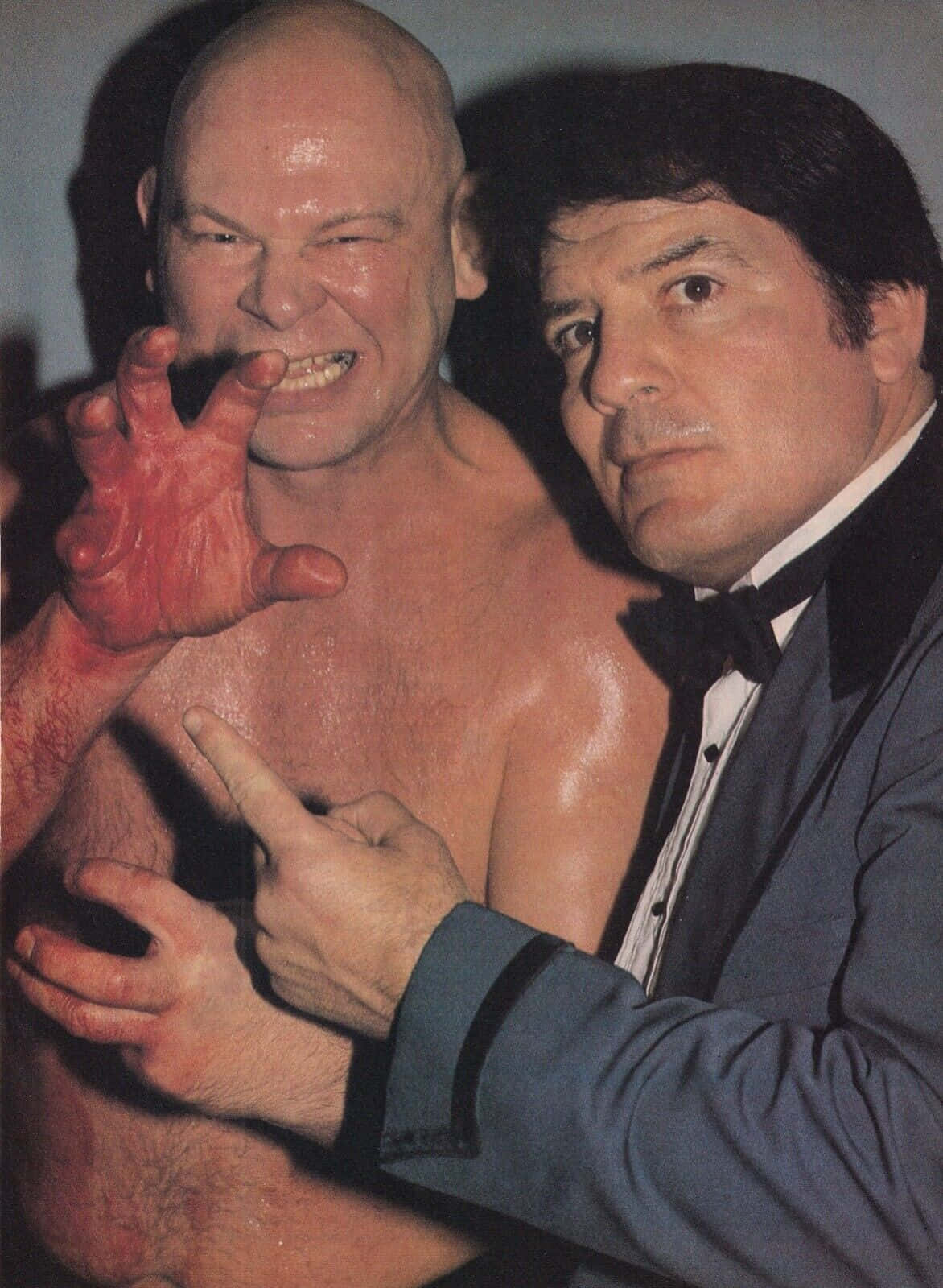 Wrestler Baron Von Raschke The Claw Posing With A Colleague Wallpaper