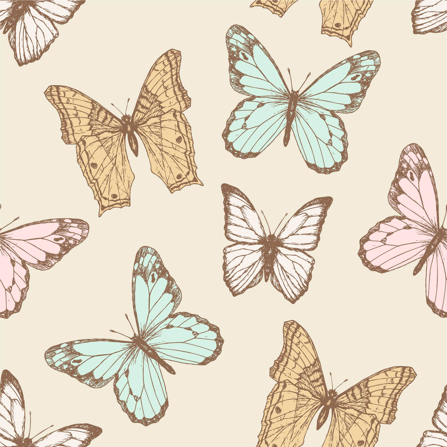 Yellow And Pink Pastel Butterflies Wallpaper