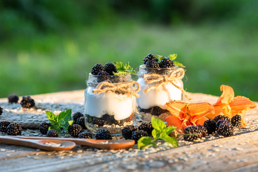 Yogurt And Blackberries Wallpaper