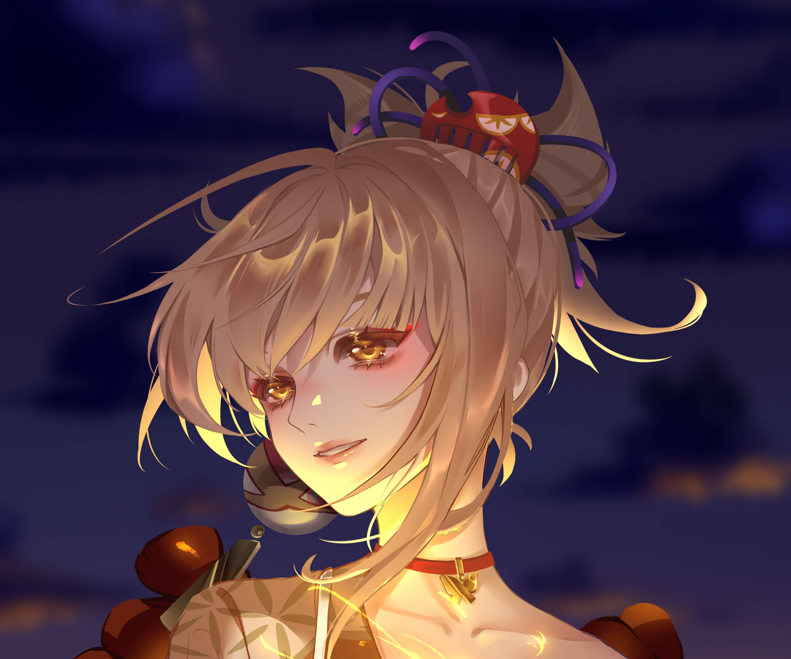 Yoimiya Smiling Slightly Wallpaper